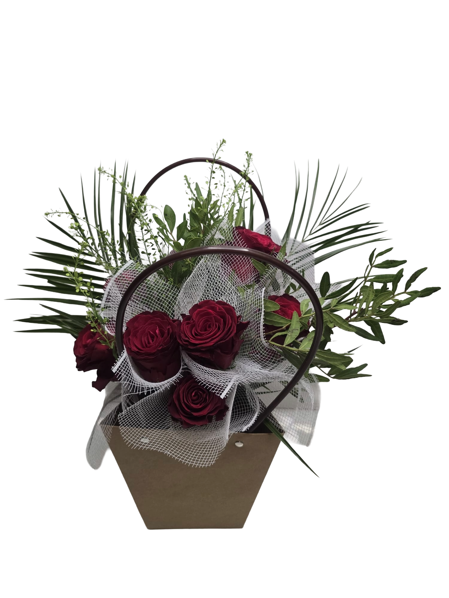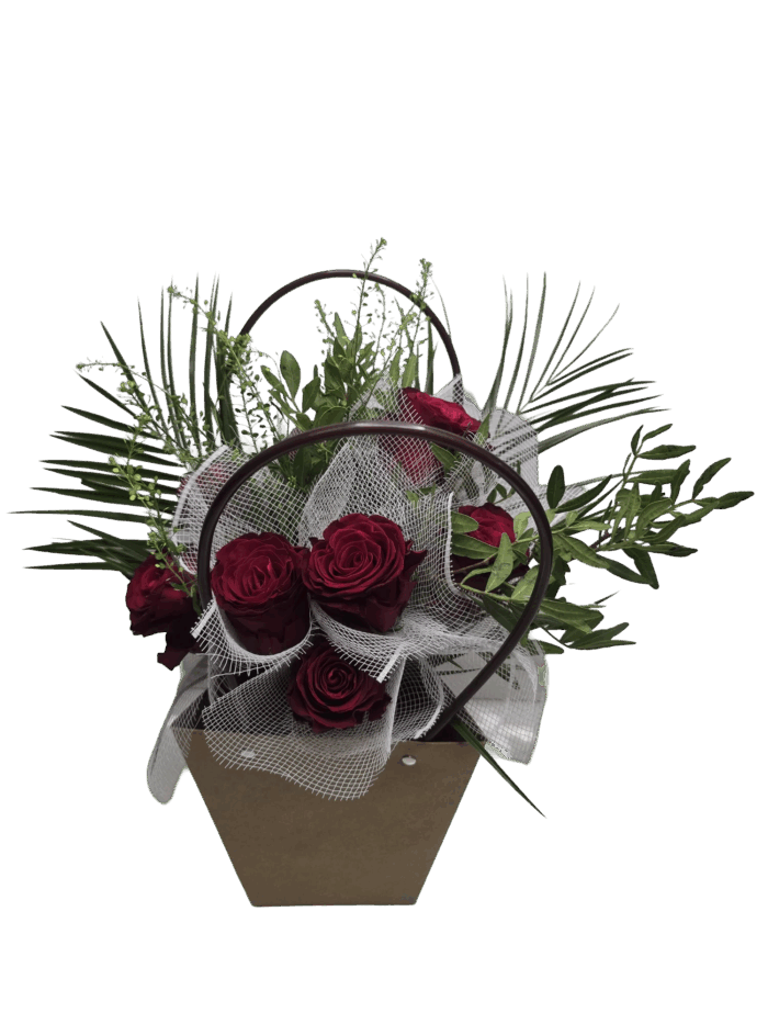 Ein ausdrucksstarkes Rosenarrangement mit tiefroten Rosen, liebevoll in einer dekorativen Geschenkbox mit herzförmigem Tragegriff arrangiert. Umgeben von frischem Grün und feinem Ziernetz entsteht ein modernes, zugleich romantisches Design. Die roten Rosen stehen für starke Gefühle, Leidenschaft und echte Zuneigung – perfekt als besonderes Liebesgeschenk, zum Valentinstag, Jahrestag oder als elegante Aufmerksamkeit mit Wow-Effekt.